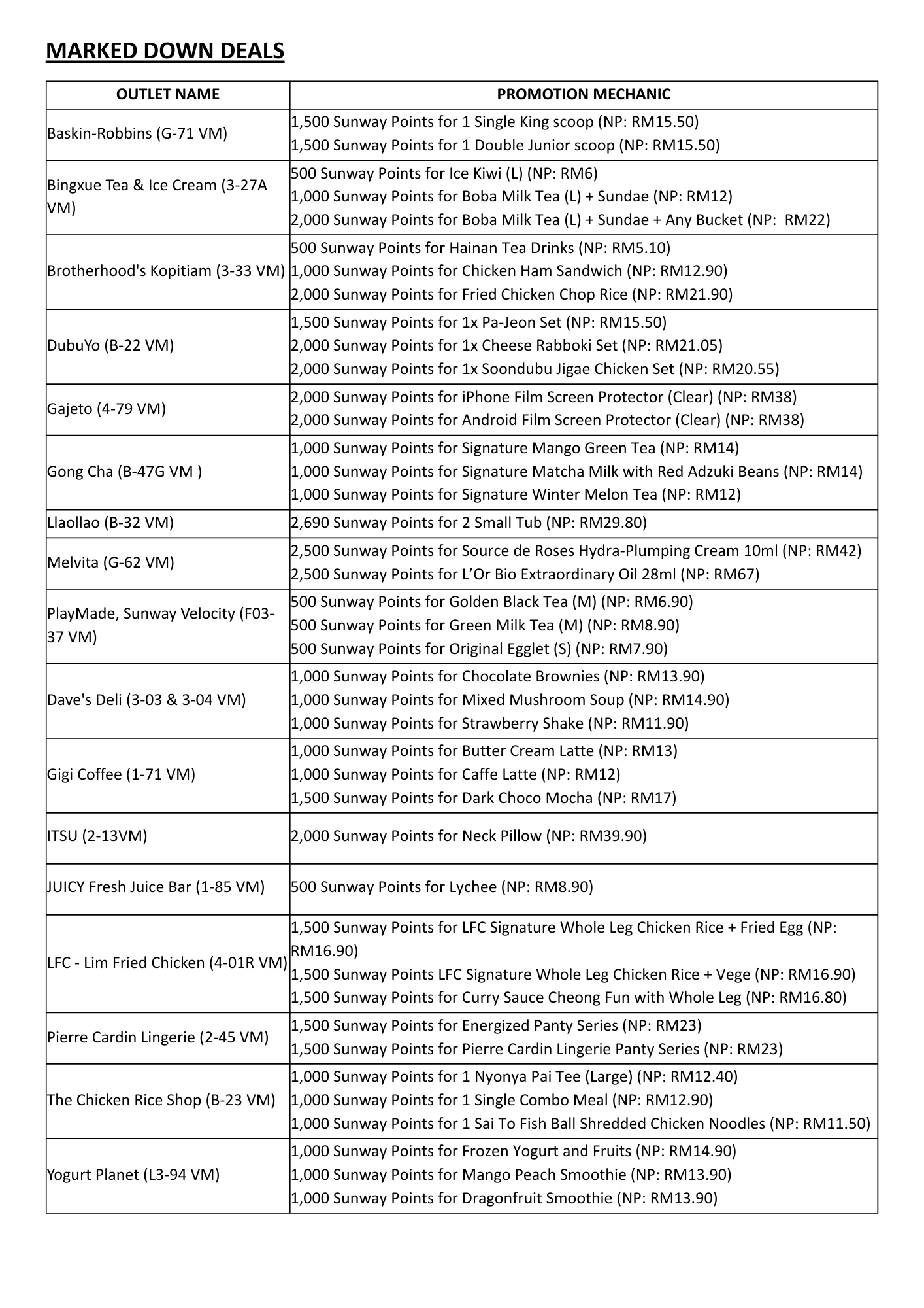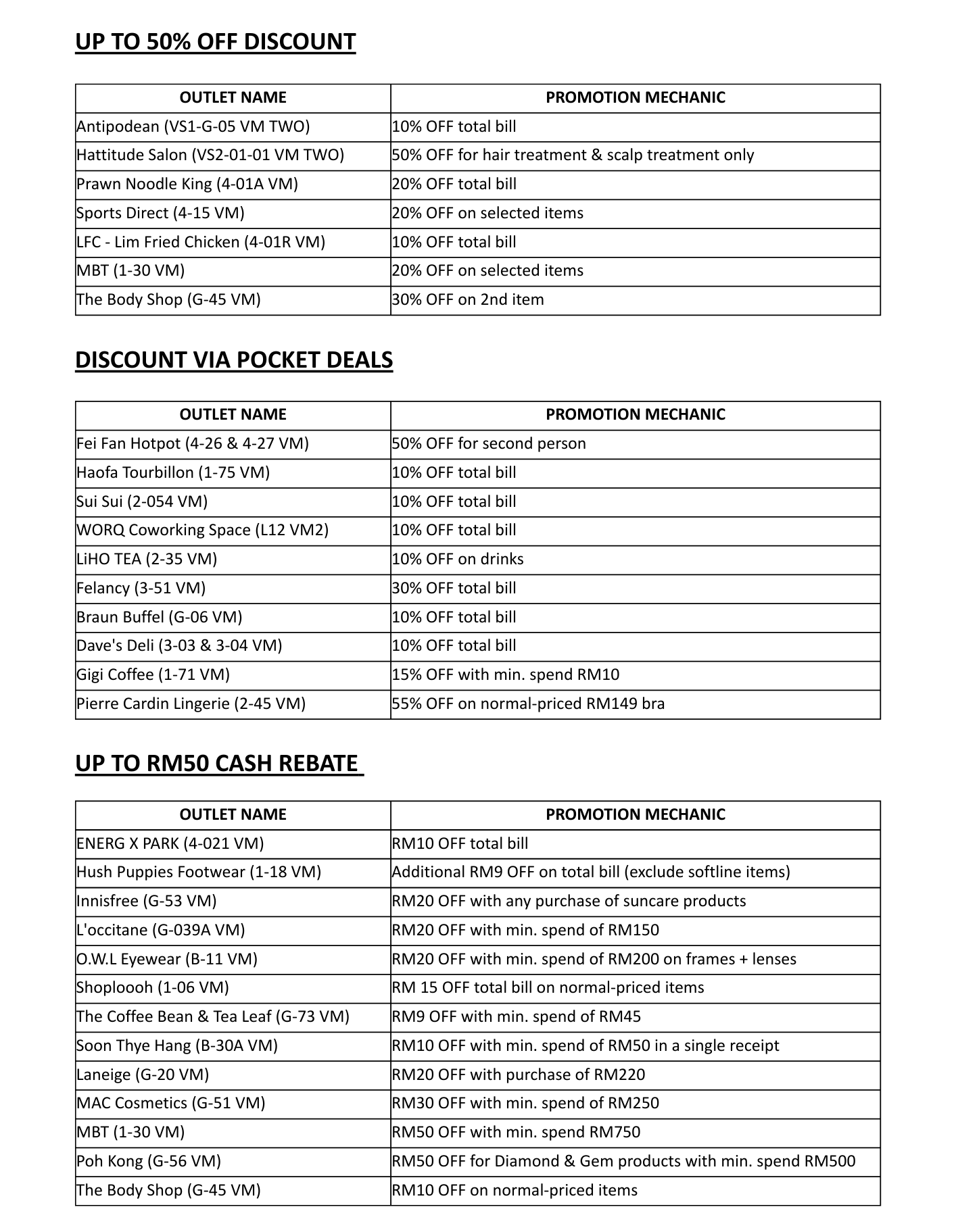 For specific terms and conditions of individual deals, kindly visit the respective merchant outlets and refer to their staff to find out more.