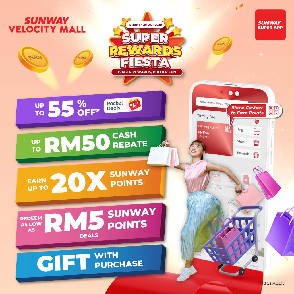 ENJOY EXCLUSIVE DEALS at Sunway Velocity Mall during our biggest campaign of the year, starting from 12 September 2025 until 26 October 2025!